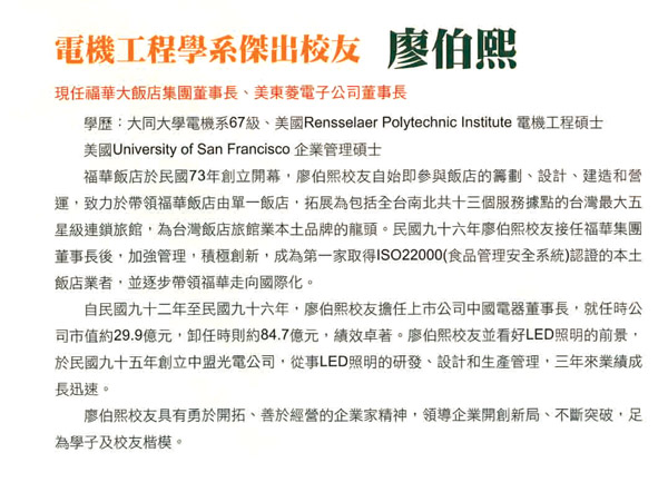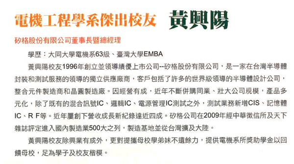 RE:10月31日大同大學校慶活動紀要:恭賀黃興陽,廖伯熙...等8位校友當選本年度傑出校友