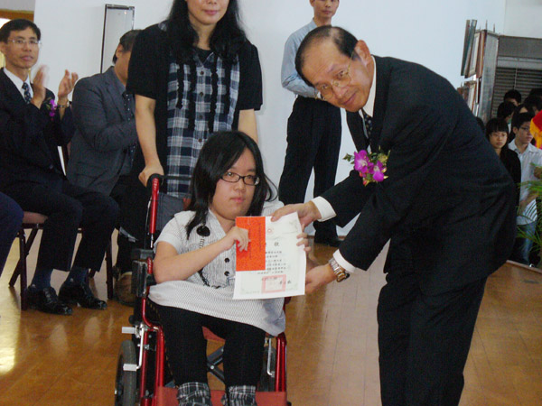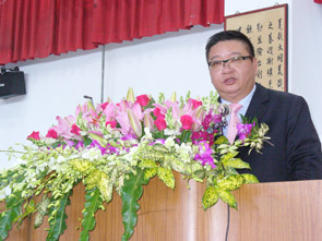 校友總會朱成志理事長亦應邀致辭並頒發豪氣獎學金