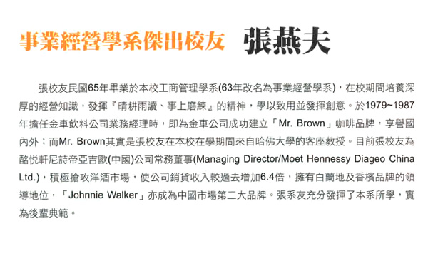 經營系65級張燕夫(Mote Hennessy Diageo China Ltd /Managing Director)