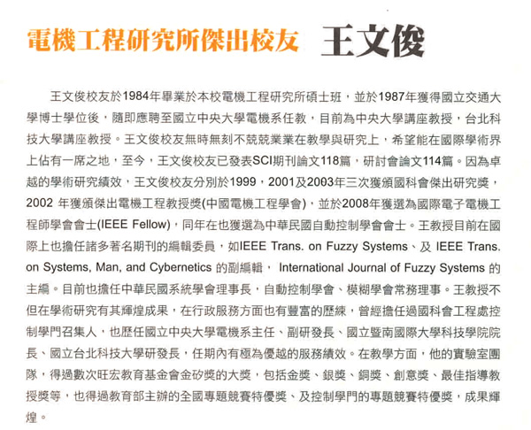 電機所73級王文俊博士(中央大學電機系講座教授)